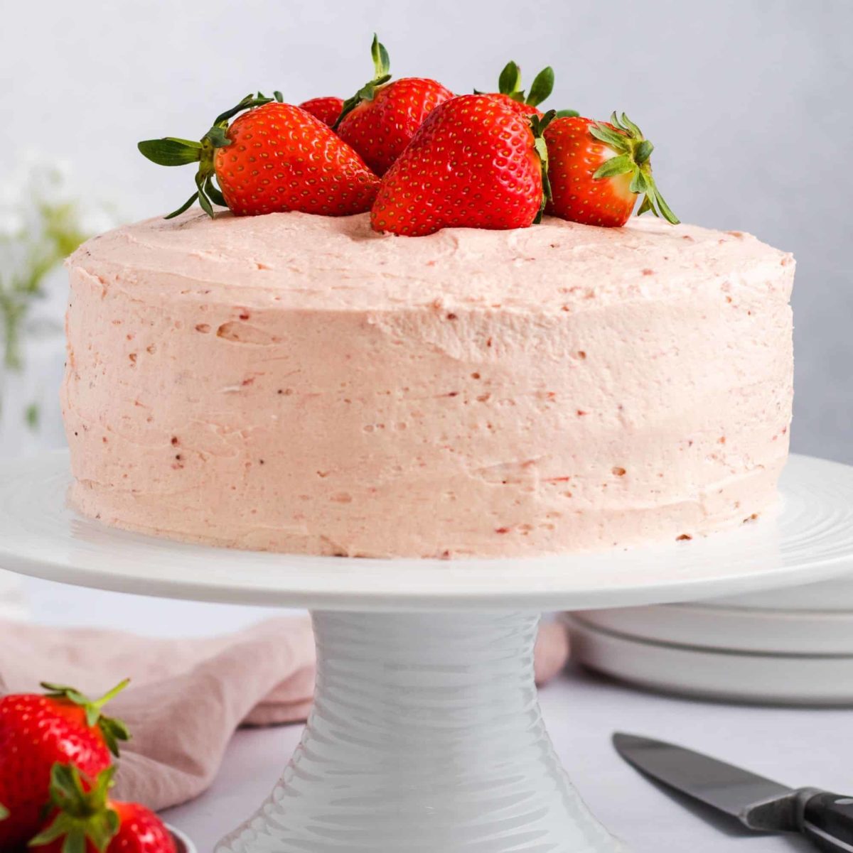 | Hi We, Hope this message finds you well! If you are a strawberry fan like me, then you will absolutely love this gluten-free, vegan strawberry cake!  This indulgent cake is layered with a strawberry preserve-infused buttercream frosting and topped with juicy, fresh strawberries. Perfect for birthdays, holidays or whenever you just need some cake! ;) Hope you get a chance to try it out!